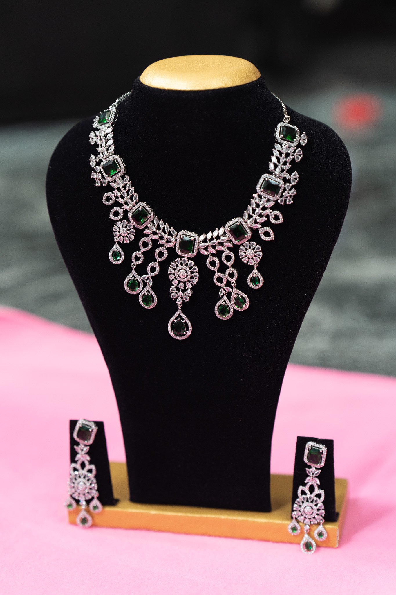 🔶 Material: High-quality alloy, white stones, green teardrop stones