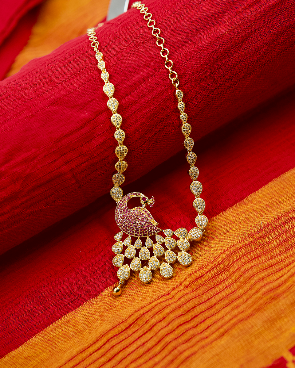 🔸 Design: Peacock motif with red stone detailing