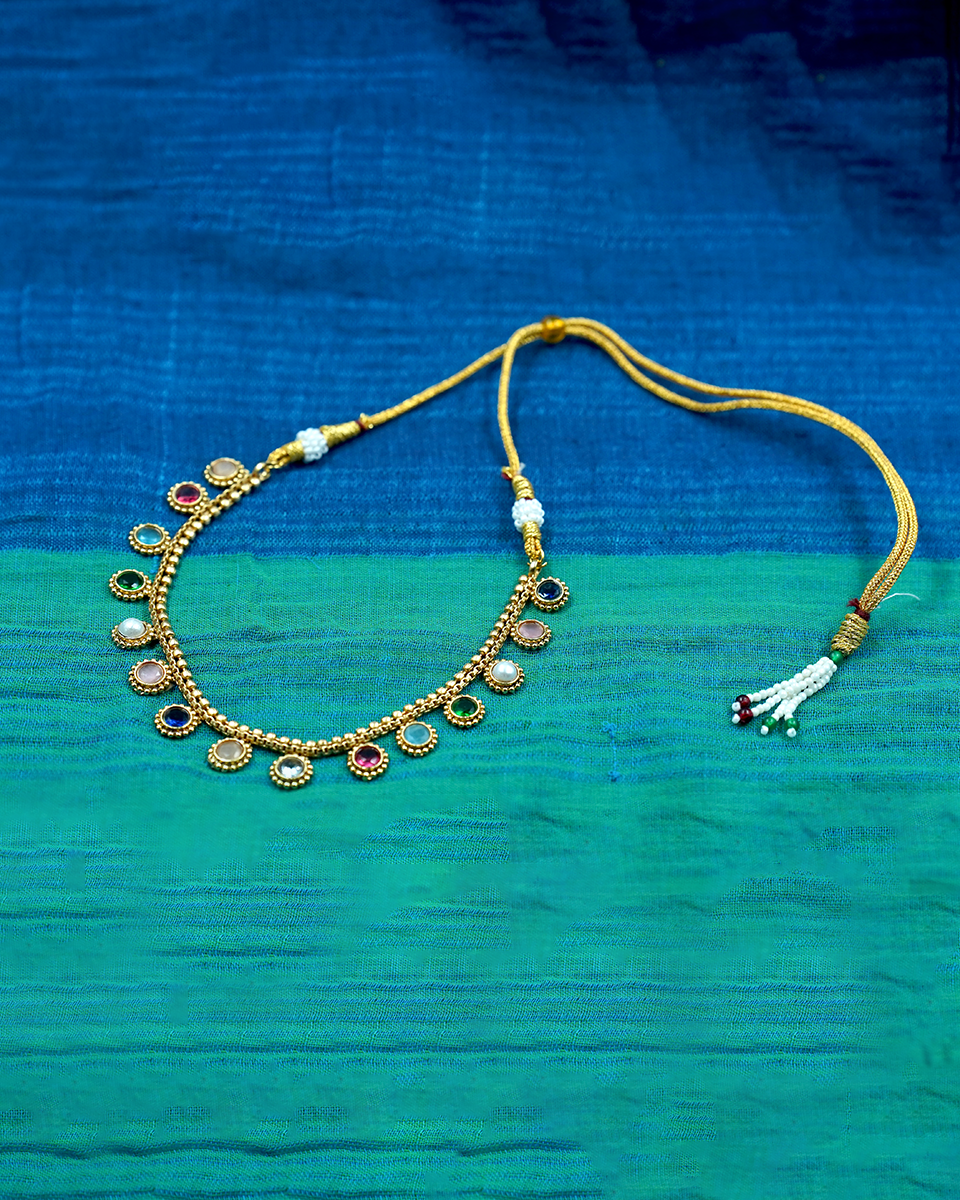 Add a pop of colour to your jewellery collection with this exquisite Multi-Stone Gold Necklace Set. Featuring a blend of vibrant stones in shades of green, blue, red, and more, the necklace is intricately designed with golden beads to accentuate the beauty of each stone. The matching earrings complement the necklace perfectly, making this set ideal for both traditional and contemporary wear.