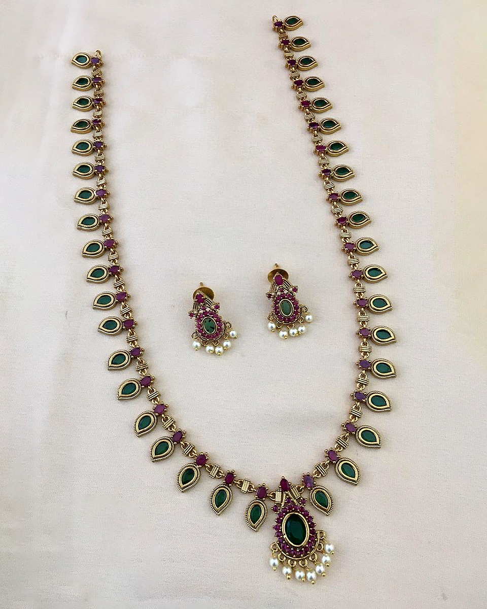 The Emerald Ruby Gold Haram Set is a graceful blend of classic elegance and traditional charm. Designed with rich emerald-tone drops, ruby accents, and a beautifully crafted central pendant finished with delicate pearl detailing, this haram adds a refined touch to any ethnic ensemble. Perfect for weddings, festive occasions, and special celebrations.
