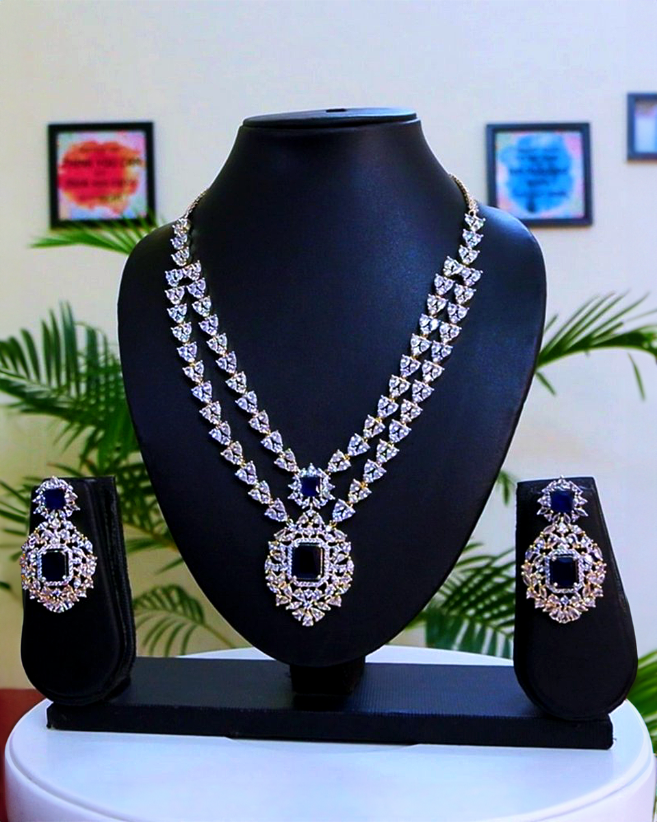 3️⃣ Styling Idea – Pair with a navy or royal blue saree/gown to highlight the sapphire tones.